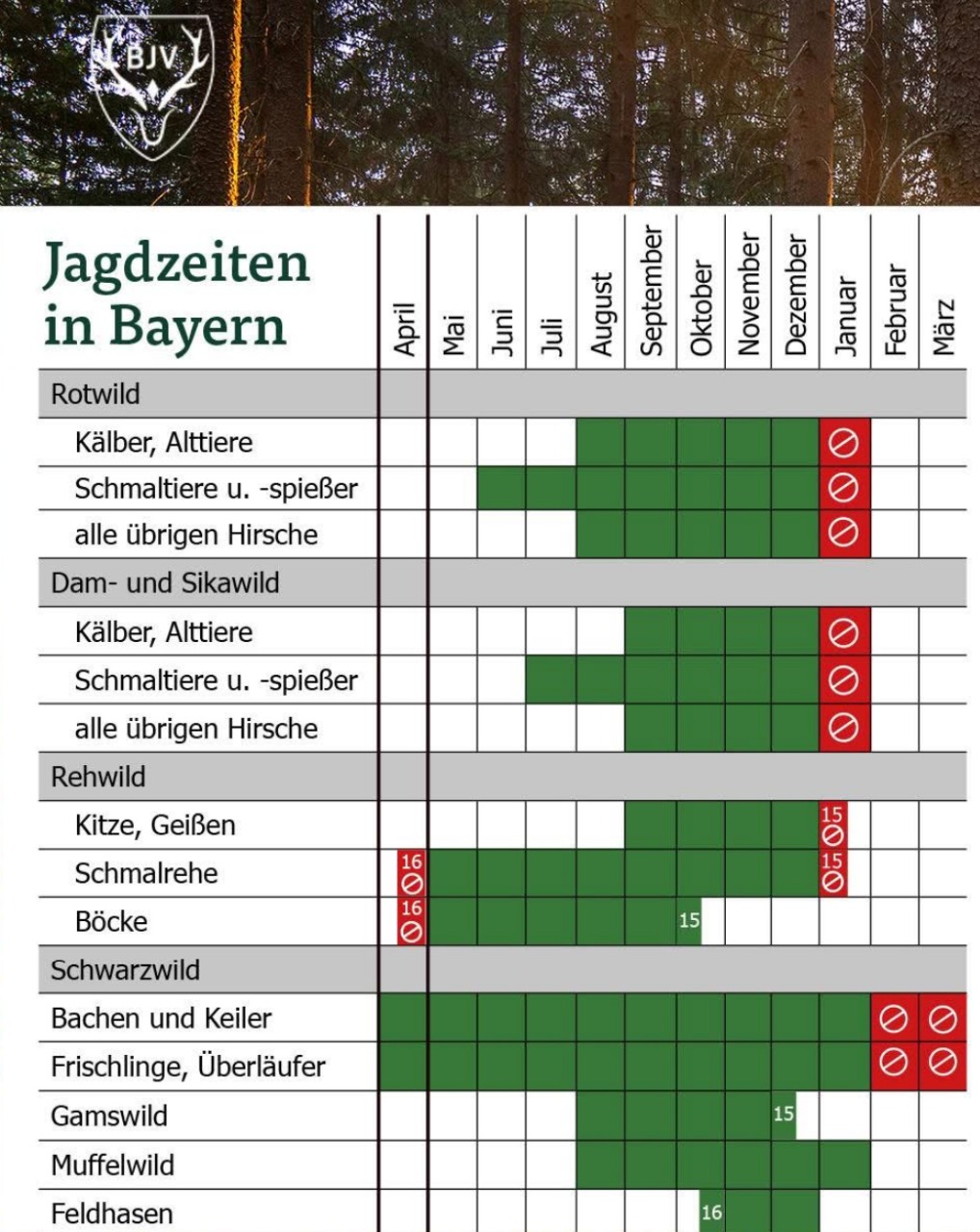 Mit Inkrafttreten des neuen Bayerischen Jagdgesetzes gelten ab dem 1. April 2026 aktualisierte Jagdzeiten.